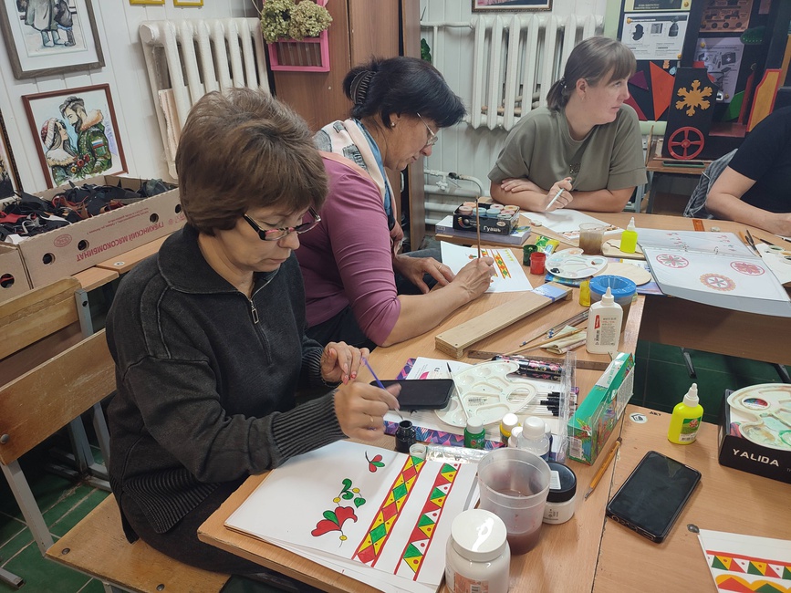 Обучение было насыщенным и проходило по двум увлекательным направлениям: художественная обработка кожи и северодвинская роспись по дереву.