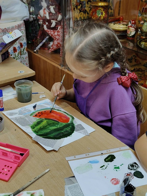 В мастерской Дома ремесел прошло интересное занятие, героем которого стала именно эта летняя ягода. Завершив работу, юные творцы с удовольствием вместе угостились спелым гостинцем.